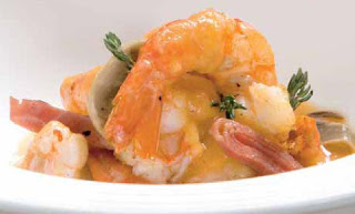 Una vez hecho esto, pasamos el sofrito por la batidora. La salsa resultante se pone en una cazuela y le añadimos los langostinos dejándolos cocer durante 3 minutos.