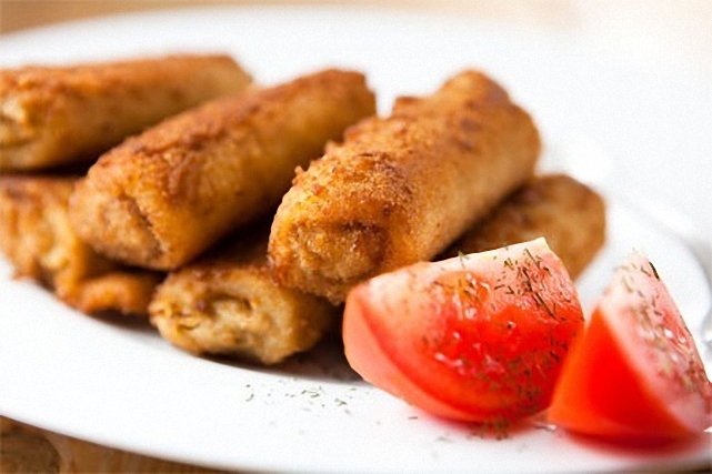 Freímos los flamenquines en aceite de oliva caliente hasta que estén dorados. Dejamos sobre papel absorbente para que absorban la grasa.